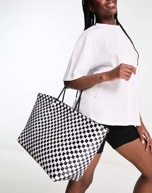 Glamorous - Borsa shopping intrecciata monocromatica a quadretti
