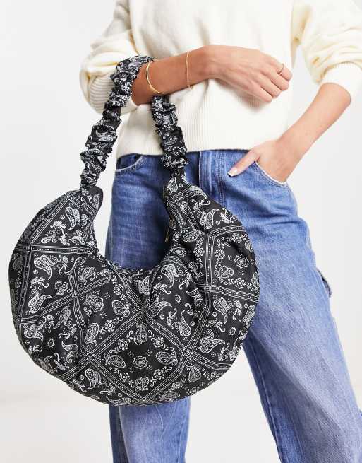 Glamorous - Maxi borsa nera con stampa a fiori stile bandana