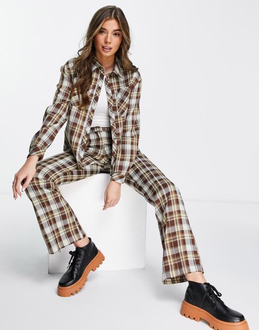 Glamorous - Pantaloni a zampa slim con spacco sul fondo a quadri grunge in coordinato