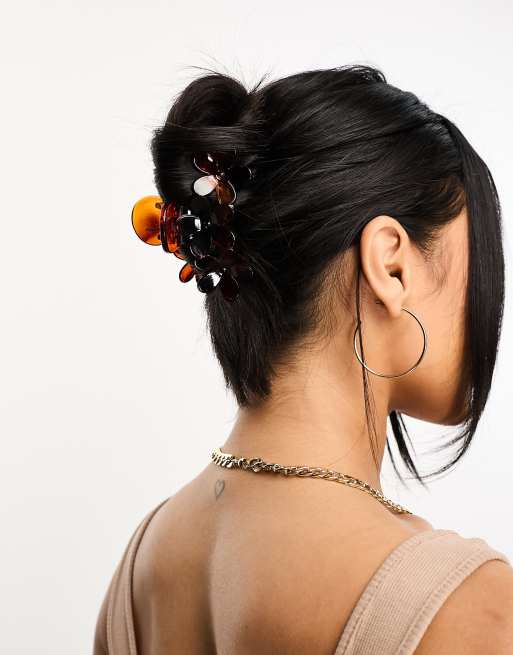 Glamorous - Pinza per capelli oversize tartarugata con fiori