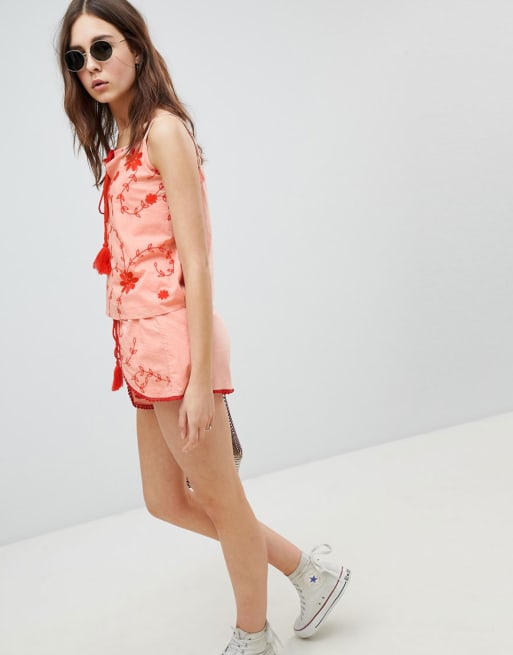 Glamorous - Top e pantaloncini con nappe e ricami a contrasto in coordinato
