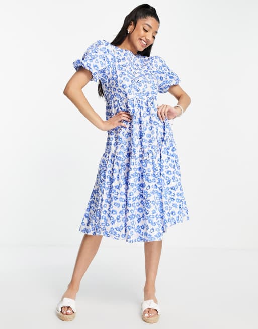 Glamorous - Vestito grembiule midi a balze blu a fiori