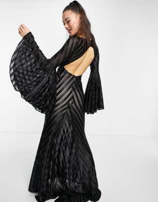 Goddiva - Vestito lungo nero con maniche ampie