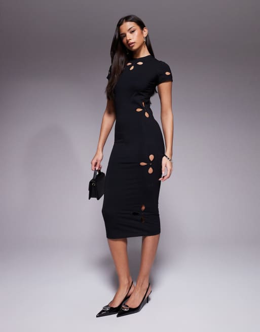Good American - Vestito midi nero con cut-out