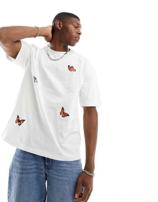 Good For Nothing - T-shirt oversize bianco sporco con stampa di farfalle