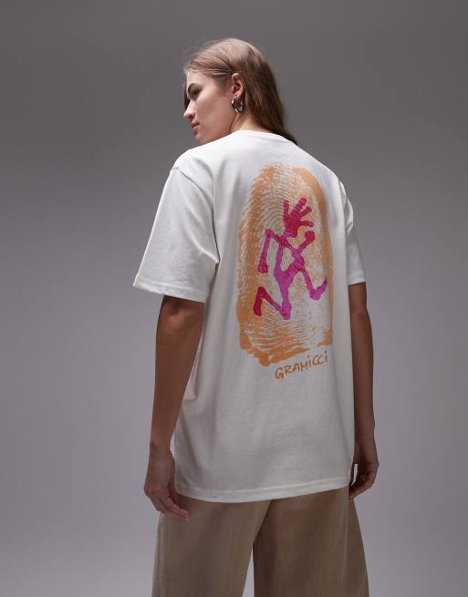 Gramicci - T-shirt bianca con grafica con impronta digitale