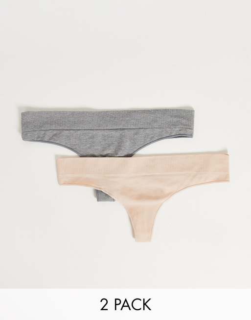 Green Treat - Confezione da 2 perizomi senza cuciture beige e grigio