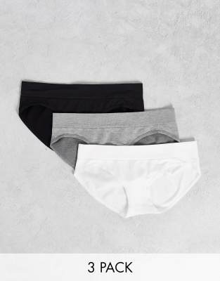 Green Treat - Confezione da 3 slip senza cuciture nero bianco grigio