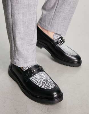 Esclusiva H by Hudson - Alevero - Mocassini neri in pelle e cavallino zebrato