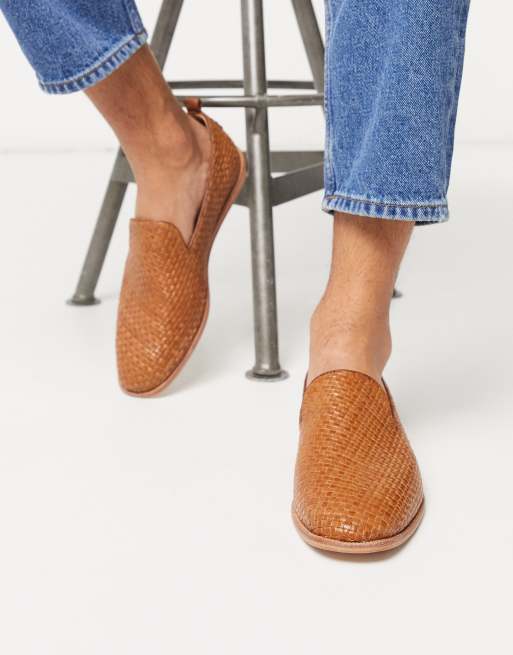 H By Hudson - Ipanema - Mocassini intrecciati in pelle color cuoio