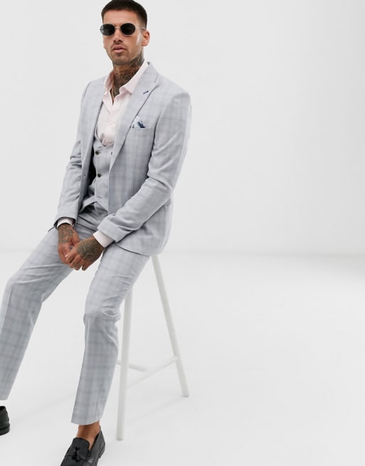 Harry Brown - Abito da matrimonio slim grigio pietra blu a quadri