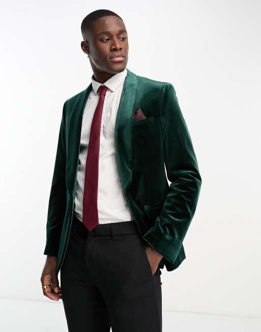 Harry Brown - Blazer skinny in velluto verde con rever sciallato