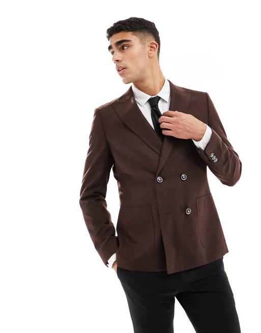 Harry Brown - Giacca da abito doppiopetto slim fit marrone effetto lino