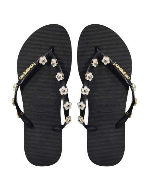 Havaianas - Infradito nere con punta squadrata e decorazioni