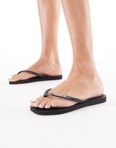 Havaianas - Infradito nere con punta squadrata e logo metallizzato