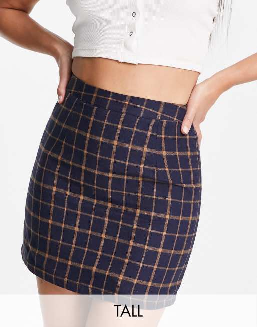 Heartbreak Tall - Minigonna sartoriale a quadri blu navy e arancione