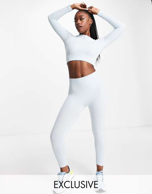 HIIT - Crop top a maniche lunghe blu ghiaccio a coste senza cuciture