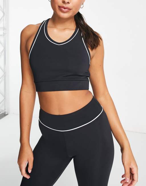 HIIT - Reggiseno nero con scollo rotondo e profili a contrasto