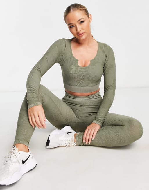 HIIT WB - Coordinato con pantaloncini mimetici testurizzati senza cuciture, canotta corta, leggings e crop top