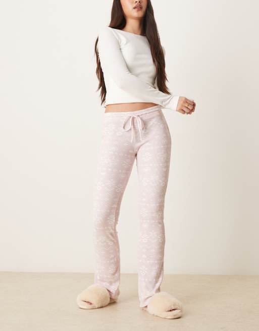 Gilly Hicks - Pantaloni a zampa a vita medio alta in piqué comodo rosa Fair Isle