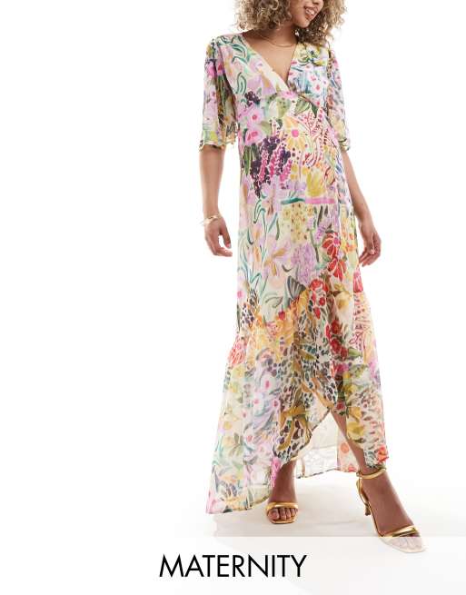 Hope & Ivy Maternity - Vestito lungo a portafoglio con stampa vivace a fiori