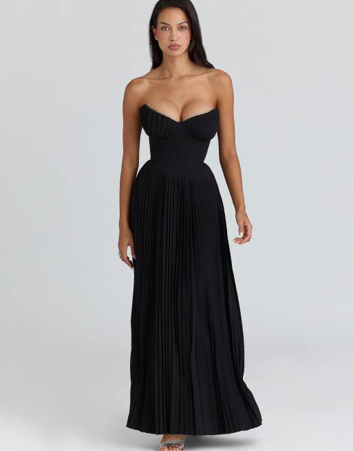 House of CB - Marcella - Vestito lungo in georgette nero a pieghe