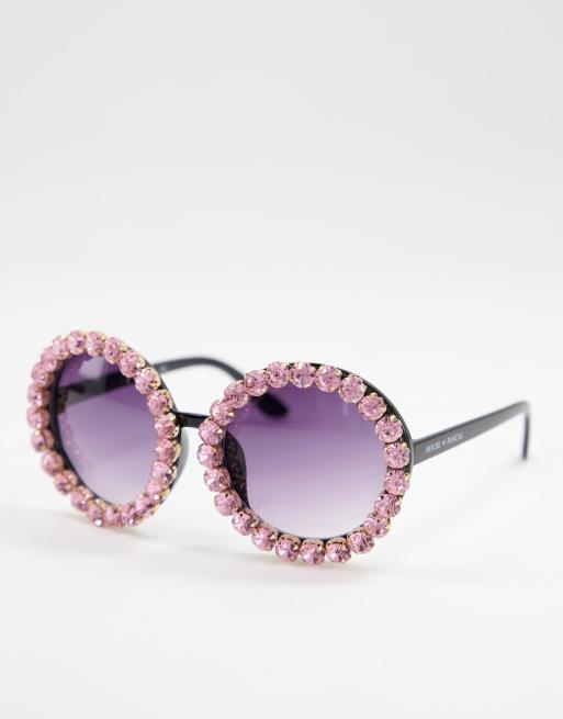 House of Pascal - Shine - Occhiali da sole rosa rotondi con strass