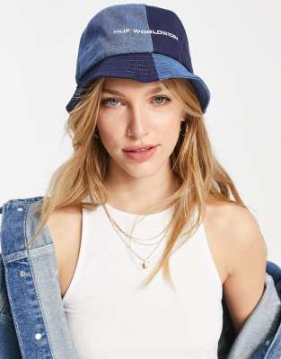 HUF - Cappello da pescatore in denim patchwork con logo