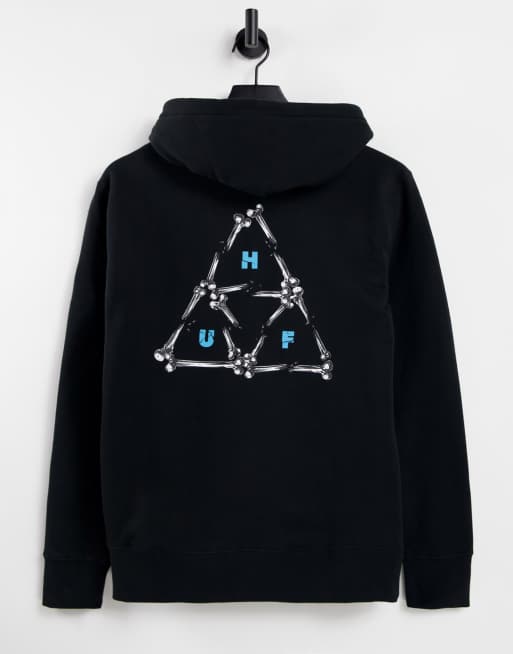 HUF - Felpa nera con cappuccio e stampa di ossa sul retro