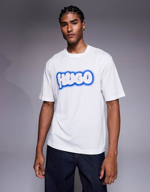 HUGO Blue - Nulibax - T-shirt bianca con stampa del logo stile fumetto