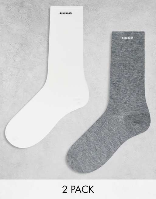 HUGO Bodywear - Confezione da 2 paia di calzini alla caviglia grigi e bianchi con logo