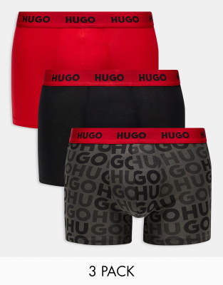 HUGO Bodywear - Confezione da tre paia di boxer grigio scuro e rosso con elastico in vita