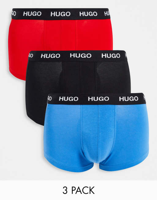 HUGO - Confezione da tre paia di boxer aderenti con fascia in vita con logo blu rosso e blu navy