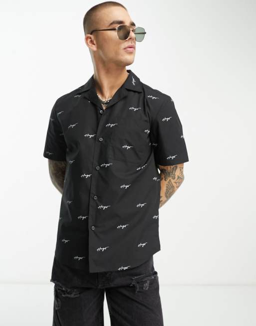 HUGO - Ellino - Camicia a maniche corte vestibilità comoda nera con stampa del logo