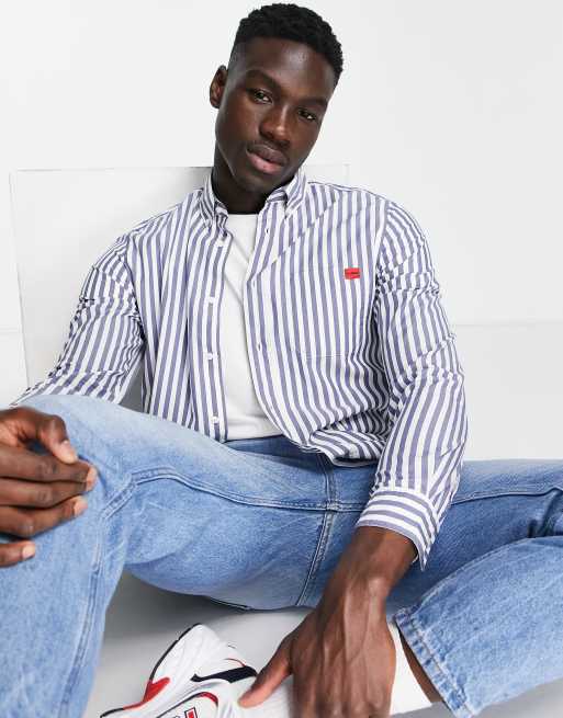 HUGO - Ermann - Camicia blu navy a righe a maniche lunghe