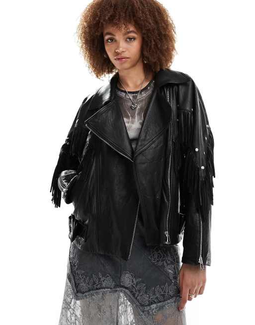 HUGO - Lafranka - Giacca in pelle nera