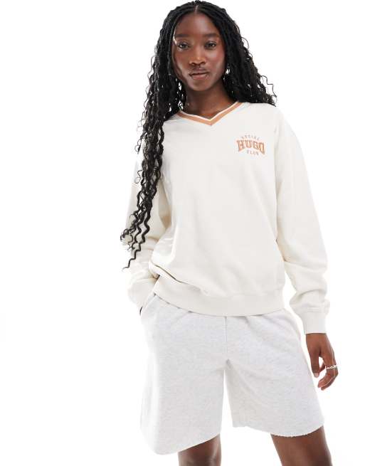 HUGO Red - Felpa bianco sporco con scollo a V