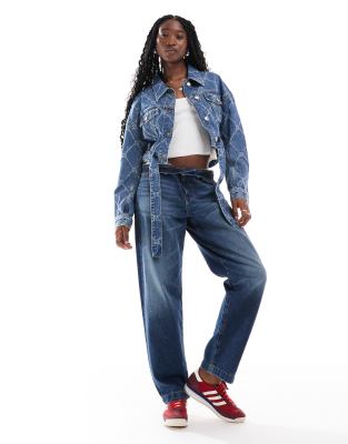 HUGO Red - Giacca di jeans lavaggio medio allacciata in vita