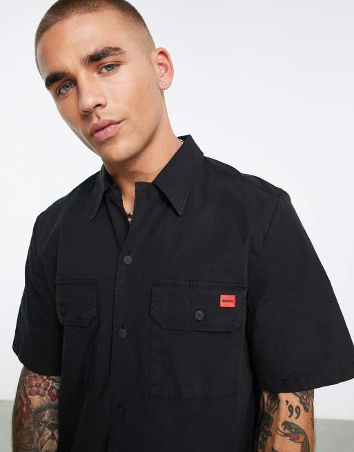 Hugo - Elpy - Camicia comoda a maniche corte nera in cotone