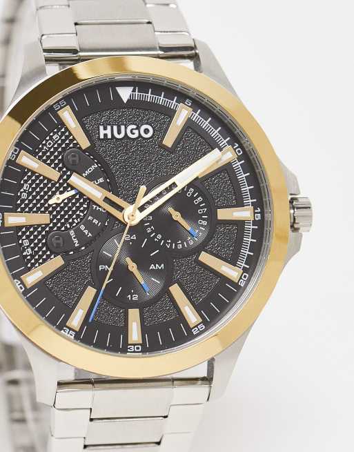 Hugo - Orologio con bracciale argentato e dorato con quadrante nero 1530174