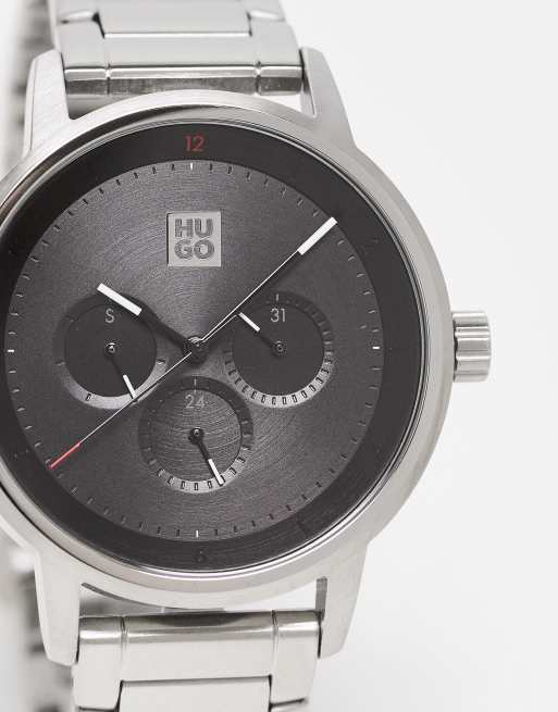 Hugo - Orologio con bracciale da uomo argentato con quadrante nero 1530266