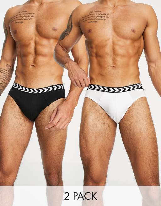 Hummel - Confezione da 2 slip con fascia in vita con motivo a spina di pesce bianchi e neri