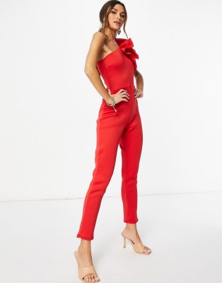 I Saw It First - Tuta jumpsuit con volant sulla spalla rossa