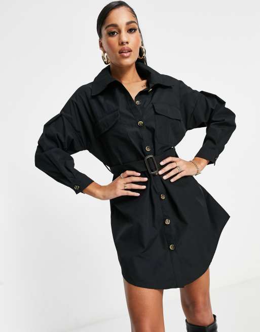 I Saw It First - Vestito camicia oversize nero con cintura