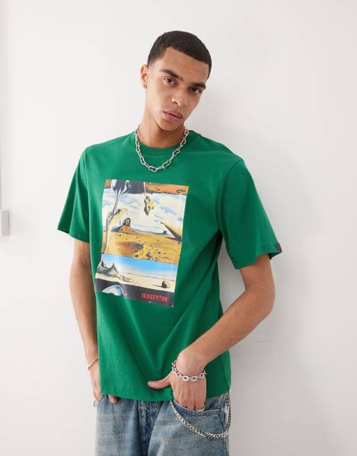 ICECREAM - Dreamscape - T-shirt verde a maniche lunghe con stampa