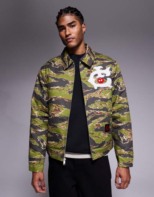 ICECREAM - Giacca trucker mimetica effetto tigrato verde e marrone
