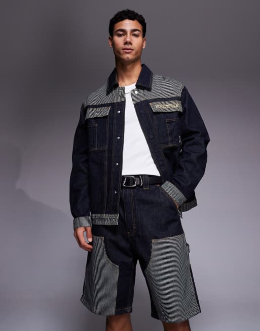ICECREAM - Pantaloncini slavati con pannelli a contrasto a righe hickory