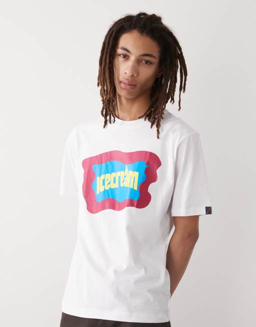 ICECREAM - T-shirt pesante bianca con logo a blocco