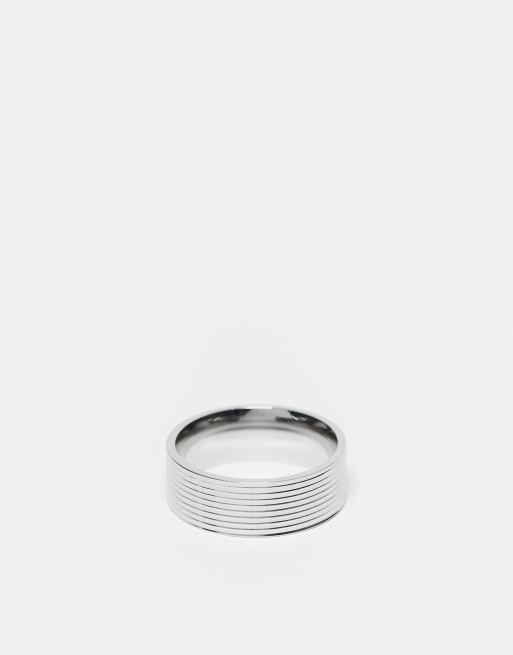 Icon Brand - Anello a fascia ampia in acciaio inossidabile argentato con incisione