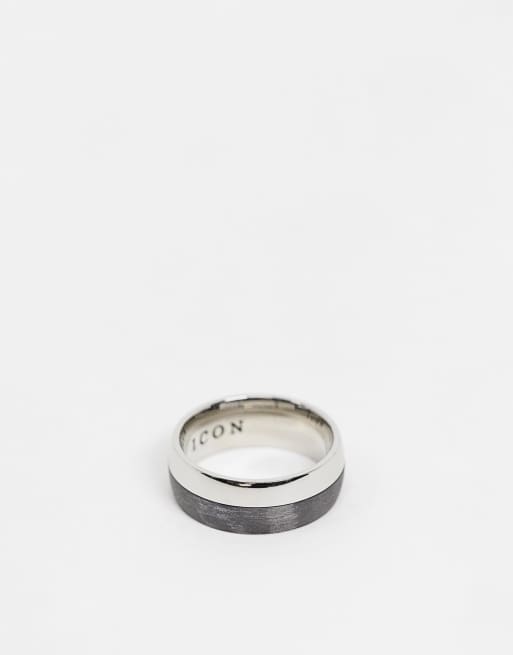 Icon Brand - Anello a fascia argento e nero in acciaio inossidabile